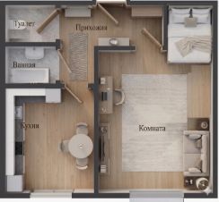 Общая площадь: 37,5 м2, жилая площадь: 18 м2.