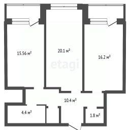 Планировка продумана и функциональна: две лоджии интегрированы в жилое пространство, одна соединена с комнатой, вторая — с кухней. Стены лоджий утеплены, установлены качественные стеклопакеты REHAU. Благодаря этому квартира светлая, теплая и особенно комфортная, а из окон открываются красивые виды на город и водохранилище.