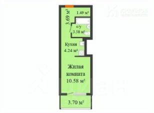 • Это самая удачная планировка студии во всем доме (огороженная кухонная зона, санузел 3,7 кв.м)