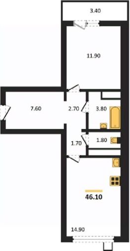 Квартира: 1 к 46,10 кв.м., 6 этаж в комплексе Яблоневые сады (ДСК), 1 очередь, корп.8, сдача: 3кв. , этажей: 19, адрес Воронеж г., Ломоносова ул., , Застройщик: ДСК.