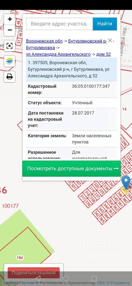 Кадастровый номер участка 36:05:0100177:*** указал продавец
