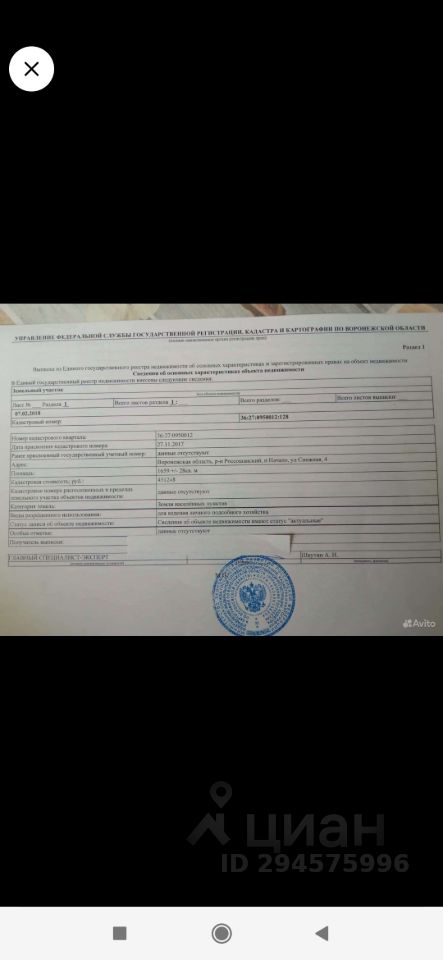 Кадастровый номер участка 36:27:0950012:*** указал продавец