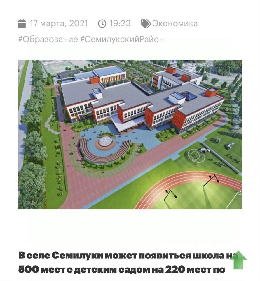 Рядом строится новая школа и детский сад. Инфраструктура развивается, активно строятся коттеджи вокруг. Очень перспективное место!