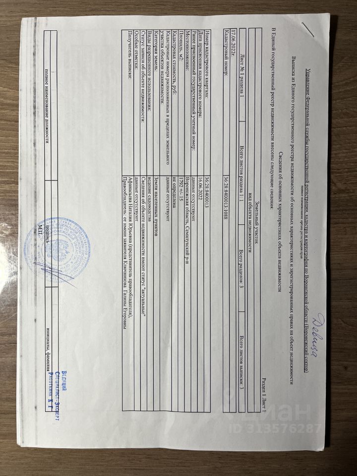 Кадастровый номер участка 36:28:8400013:*** указал продавец