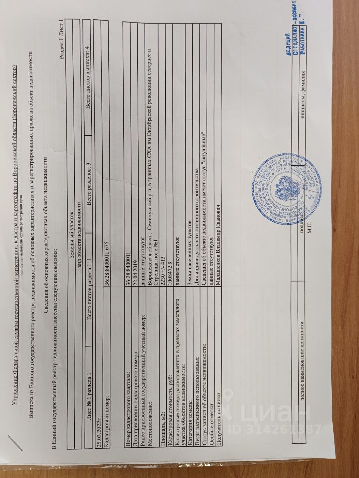 Кадастровый номер участка 36:28:8400011:*** указал продавец