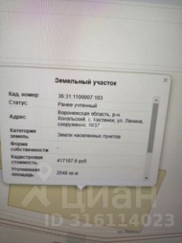 Кадастровый номер участка 36:31:1100007:*** указал продавец