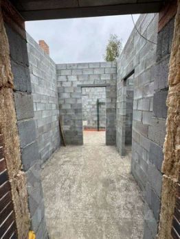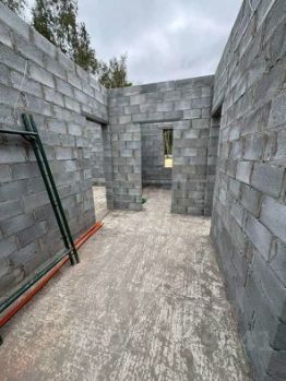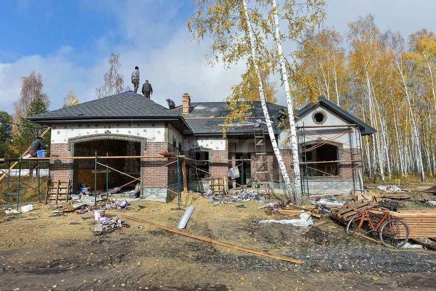 На фото отображены этапы строительства от фундамента до варианта отделки.