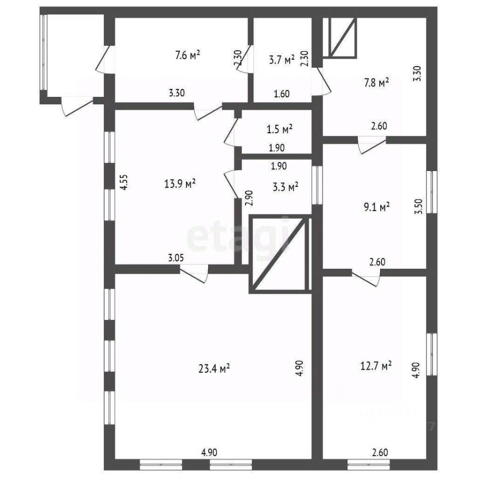 3 изолированные комнаты (12,5 и 14 м²)