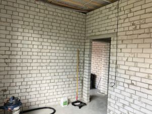 Дом площадью 130 кв. м., из газосиликатного блока и обложен кирпичом. В доме выполнена электроразводка, теплые полы, зимой отапливается.