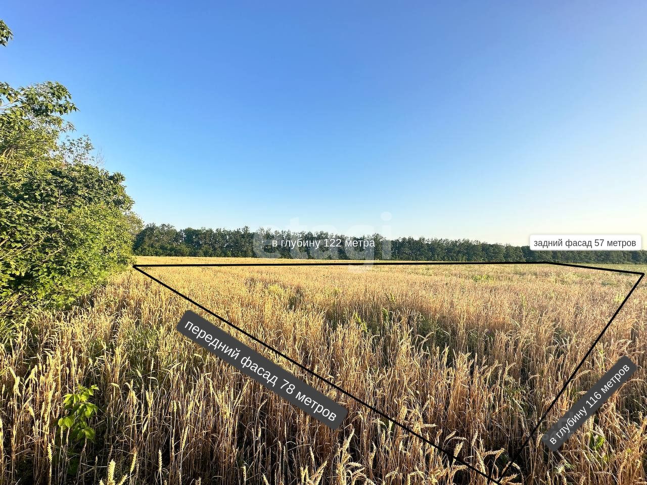Участок имеет ровный рельеф, подходит для быстрого начала строительных работ. (площадь по фасаду 78 метров, в глубину 115 и 122 метра)
