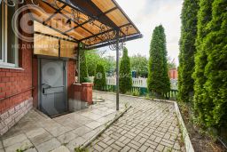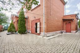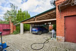 Территория огорожена забором из красного кирпича, высота 1,8 м. Участок сквозной, въезд во двор с двух сторон. Ворота Doorhan с дистанционным управлением. Установлено видеонаблюдение.