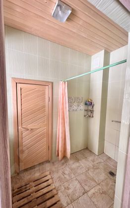 Общая площадь дома 92,8 м2 (газосиликатный, ленточный), год постройки 2016, 2 комнаты 14,2 м2 + 14,4 м2, кухня гостиная 20,6, совмещенный с/у 8,7, хол 16,4. В доме находится дровяная баня: парная 5, душ 3,7, комната отдыха 9,8. Гараж 23,1, навес на одну машину.