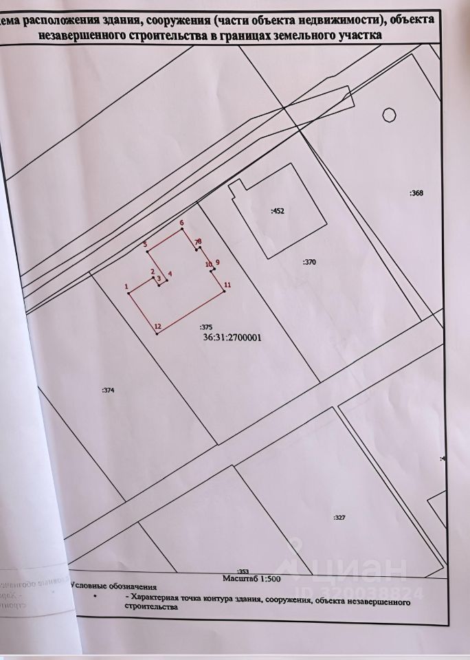 Кадастровые номера участка 36:31:2700001:*** и здания 36:31:2700001:*** указал продавец