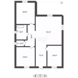 Современный дом общей площадью 119 кв. м, построенный в 2024 году на фундаменте 2023 года, предлагает комфортное проживание в продуманном пространстве. Площадь застройки составляет 157,5 кв. м, все коммуникации подведены и готовы к использованию. Просторная планировка включает три комнаты, раздельный санузел, а также кухню-гостиную с выходом на террасу — идеальное решение для семейного отдыха и приема гостей. В доме предусмотрена система теплых полов по всему периметру, дополненная радиаторами под каждым окном, что гарантирует равномерный обогрев в любое время года. Отделка выполнена в состоянии пред чистовой, что позволяет новым владельцам адаптировать интерьер под свои предпочтения без необходимости капитального ремонта.