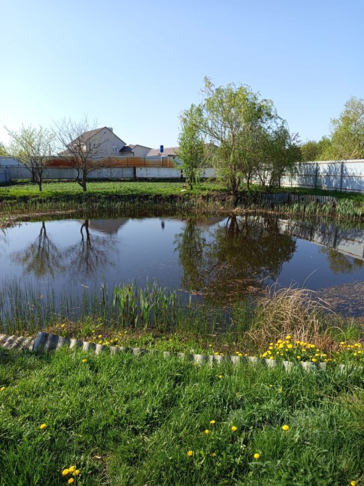 Во дворе искуственно- выкопанный пруд, много рыбы. Зона отдыха возле пруда с беседкой. Хороший огород, чернозём.. Посажены плодовые деревья, орехи, кустарники- малина, ежевика. Впереди дома большой сад- вишни, яблоки абрикосы, сливы.