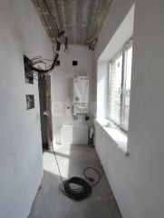 Отопление - газ проходит около дома по улице, нужно подключится, газовый котел уже установлен в котельной, радиаторы - в комнатах.