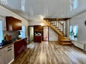 На первом этаже расположены большая гостиная-кухня, спальня, санузел.
