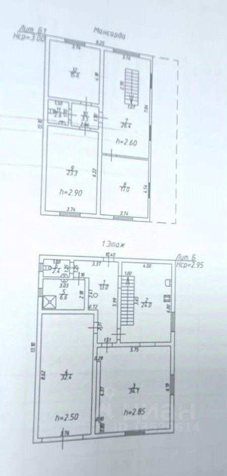 На втором этаже - 3 комнаты 17м2, 23,3м2, 15,6м2 и с/у 2,6м2