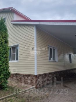 Построен из газосиликатных блоков + утепление. Фасад - сайдинг.