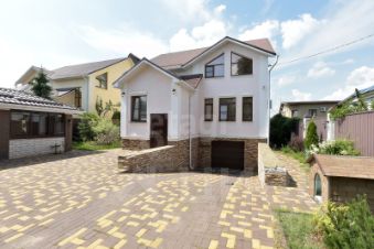 Дом площадью 310,5 кв.метров на 3,5 сотках земли имеет три этажа - два жилых и третий цокольный, крытый просторный гараж.
