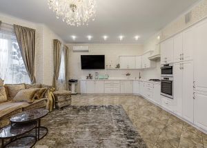 • Современная техника: Оснащен всей необходимой бытовой техникой, включая холодильник, стиральную машину, посудомоечную машину, духовой шкаф и варочную панель