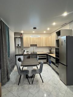 Отделка: керамогранит на полу(теплый пол по всей площади), виниловые обои, натяжные потолки.