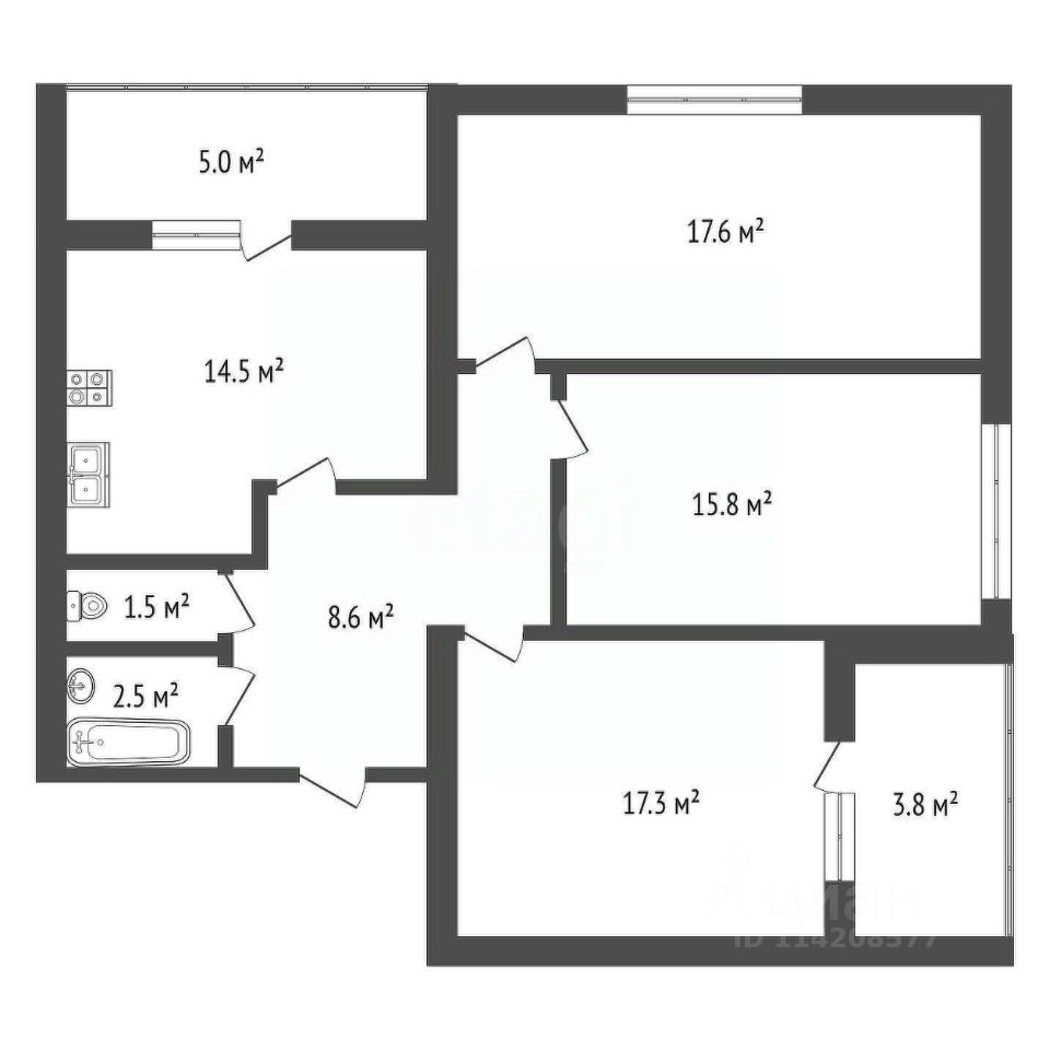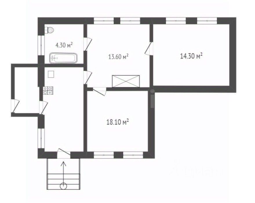 * 3 комнаты и кухня с выходом на две веранды — во двор и на улицу.