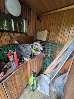 На участке расположены два дома. Деревянный дом площадью около 30 кв. м включает один этаж и чердак, оборудован русской печью и электричеством, что позволяет использовать его круглый год. Второй дом — кирпичный, площадью 15 кв. м, двухэтажный, с недостроенной баней (общая стена с соседями). Также на территории есть сарай, беседка, летний душ и туалет, навес для автомобиля, детская площадка с песочницей и домиком.