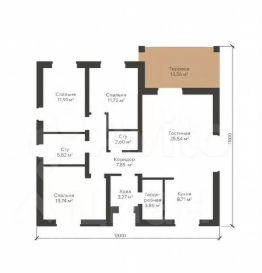 Вашему вниманию представлена НОВАЯ ОТЛИЧНАЯ планировка дома, которая подойдет для большой семьи — три спальни, 2 санузла, просторная кухня-гостиная с панорамным остеклением.