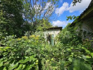 ДОМ КИРПИЧНЫЙ, ГАРАЖ КИРПИЧНЫЙ, ТУАЛЕТ КИРПИЧНЫЙ в глубине участка. И можно модернизировать беседку, которая стоит рядом с оврагом, в тени деревьев.