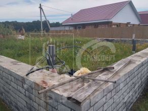 На участке заложен фундамент 9х10 для будущего дома с коммуникациями.