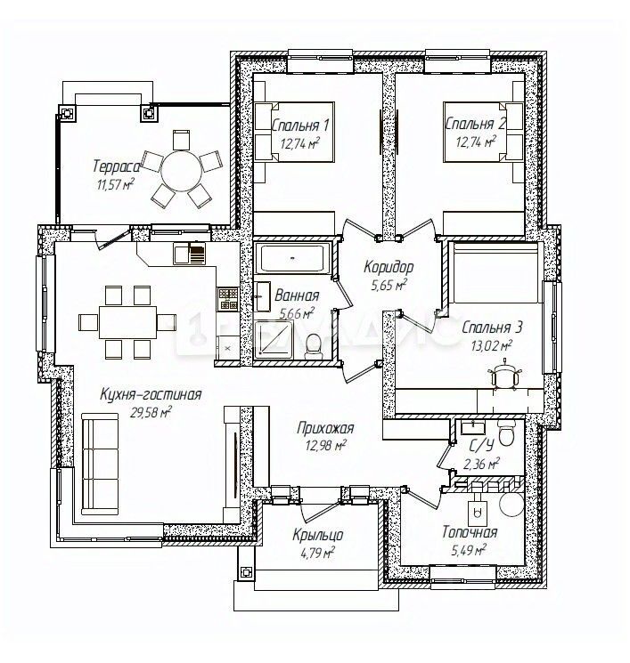 Общая площадь: 101,6 кв. м