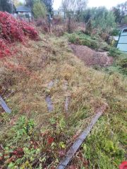 Длинна 19 метров по фасаду и 40 метро в глубину. По периметру огорожен сплошным забором из проф листа. Участок на возвышенности с прекрасным видом.