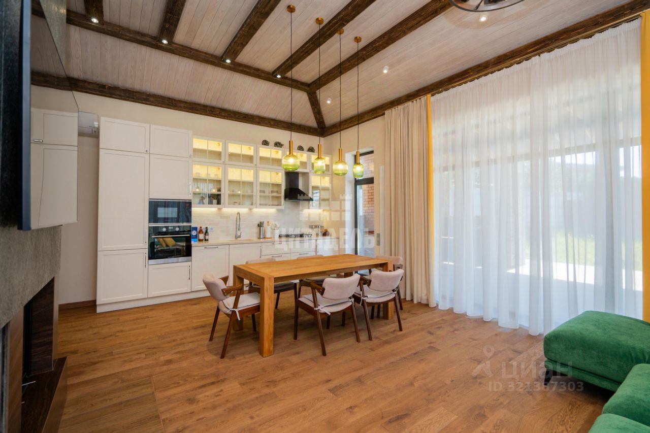 В доме высокие потолки, камин, баня из термоясеня, раздельный санузел, гардеробная, просторная терраса с зоной для барбекю. В подарок покупателю остается вся мебель и техника.