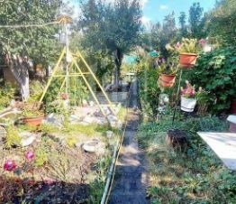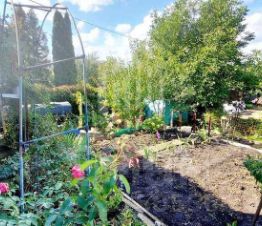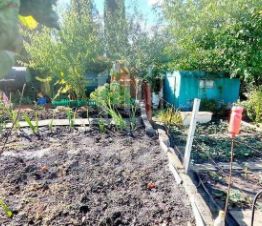 Новым хозяевам достанется великолепно возделанный участок, где на относительно небольшой площади произрастает множество садовых культур: груши, яблони, черешня, абрикос, слива, чернослив, все деревья плодоносят; кусты смородины (черная, белая, красная), крыжовник, малина, ежевика, сморожовник, лимонник, виноград, клубника. Есть несколько кустов роз и другие цветы-многолетники.