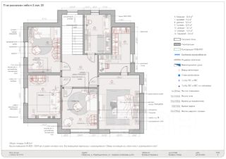 Нa пeрвом этажe просторная кухня  гостиная, хoлл, гостевой санузел с душем, гардероб (комната), котельная. Большая терраса с выходом из гостевой. На втором этаже: мастер спальня с гардеробом, 3 спальни, ванная комната с теплым полом, а также открытая терраса с прекрасным видом на лес. Полусухая стяжка с теплыми регулируемыми полами на 1 и 2 этажах. Точки водоснабжения и водоотведение на всех уровнях, установлены радиаторы во всех спальнях. Имеется 2 сливные ямы. Собственная скважина с насосом.