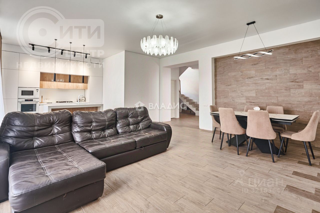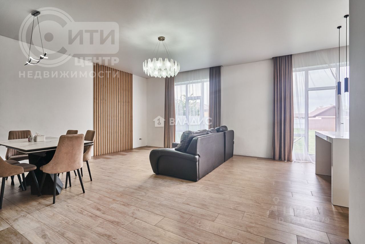 Дом построен в 2016 году из блочного материала, общая площадь составляет 195,3 кв. м, жилая — 68 кв. м. Высота потолков — 3 метра, что создаёт ощущение простора и свободы.