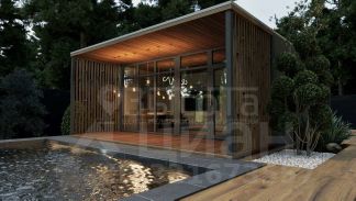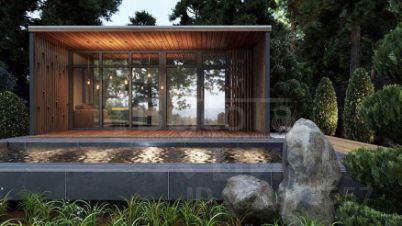 Участок и коммуникации не входят в стоимость!!!ФундаментДля установки дома подходят винтовые сваи, бурониливные сваи, забивные железо-бетонные сваи, свайно-ростверковый фундамент. Базовая версия устанавливается на 9-ти винтовых сваях. Каркас и напольное покрытие Силовой каркас выполнен из профильной трубы 80х80х3 и окрашен грунт-эмалью для придания коррозионной стойкости. Основание пола утеплено плитами из экструдированного пенополистирола толщиной 50 мм. Напольное покрытие выполненно из строганной древесины хвойных пород толщиной 40 мм. На доску уложена ориентированно-стружечная плита OSB-3 9мм. Финишное покрытие выполненно из кварцвинила. СтеныНаружние стены и перегородки выполннены из стеновых сэндвич-панелей толщиной 50 мм заполненные минеральной ватой, что обеспечивает конструкцию высокими шумо-, гидро-, теплоизоляционным и огнестойкими свойствами. Установлены межкомнатные двери из МДФ с фурнитурой. КровляКрыша выполненна из кровельных сэндвич панелей заполненных минеральной ватой. Благодаря превосходным свойствам по огнестойкости такая кровельная панель позволяет устанвоить печь-камин в любой точке помещения.