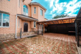 Въезд во двор на несколько машин, большой гараж с автоматическими воротами. Двор выложен плиткой. Между соседями забор декоративный бетонный высокий.