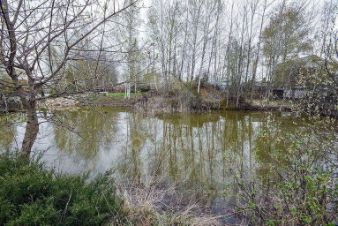На территории участка 15 соток есть свое зарыбленное озеро, беседка для вечерних посиделок и баня.