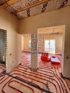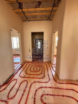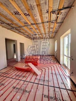 Рядом расположены и продаются четыре новых, построенных в августе 2025 года, дома площадью 100 кв м и индивидуальными участками 4-5 соток. Каждый дом построен из газосиликатных блоков, утеплен, оштукатурен снаружи декоративной штукатуркой "Короед", а также оштукатурен внутри, залиты полы: полностью готов к оклейке обоями или покраске; по всему периметру домов проложены тёплые полы (во всех зонах, включая коридоры, котельные и прочее), а также установлены современные биметаллические радиаторы. Высота потолков - 3.15 кв м. Входная дверь современная, с терморазрывом. Дома будут сданы полностью в предчистовой отделке. По желанию новых владельцев можно сделать внутреннюю отделку вплоть до установки кухонного гарнитура и включить ремонт в стоимость ипотеки. Скважина у каждого дома - своя, также как и канализации на три кольца. Газ заведён в дом: отопление и горячая вода подаются с помощью двухконтурного газового котла BAXI, ДОМА УЖЕ ТОПЯТСЯ!. Установлены пластиковые стеклопакеты. Крыша утеплена и покрыта металлочерепицей.