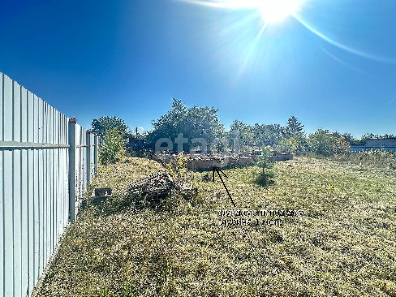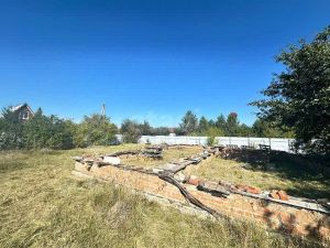 На участке уже подготовлен монолитный ленточный фундамент глубиной 1 метр под капитальное строение, а также возведен фундамент под погреб, что сокращает время и затраты на начальном этапе строительства.