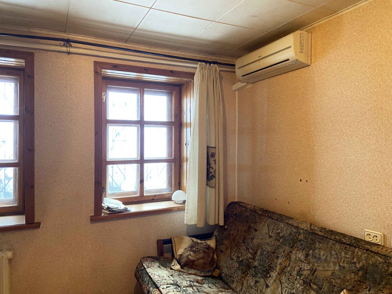 В доме деревянные окна и подоконники, покрытые лаком и в хорошем состоянии. На окнах установлены металлические решетки.