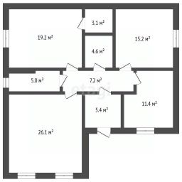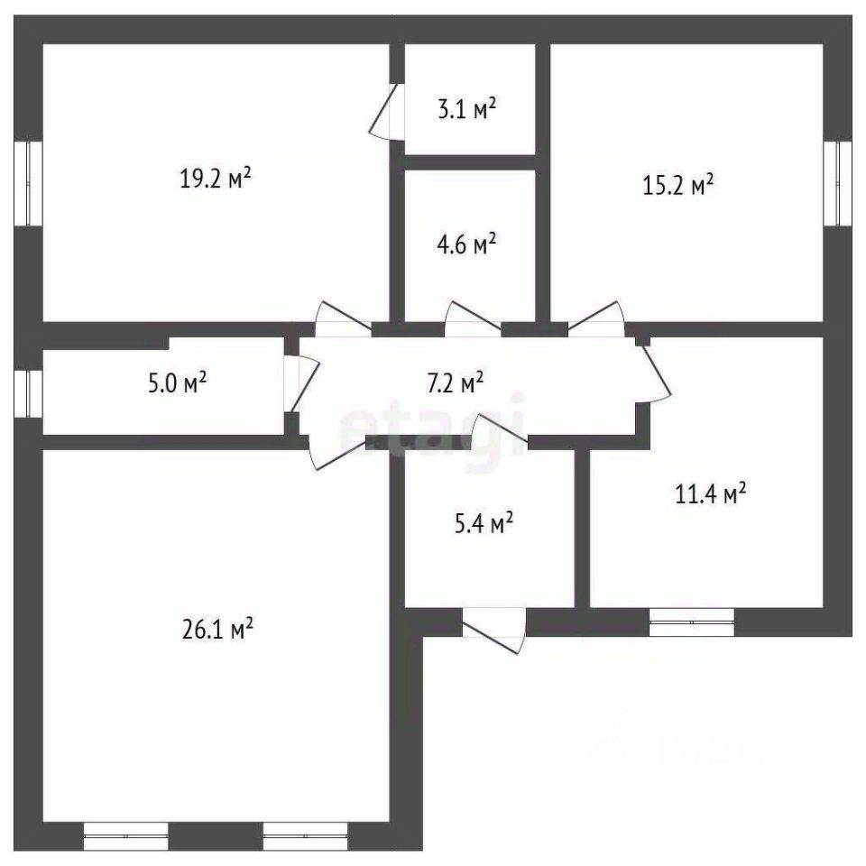 По фасаду площадь застройки 120 кв. Жилая 103 кв. 3 спальни, 2 санузла, 2 прихожие, гардеробная.