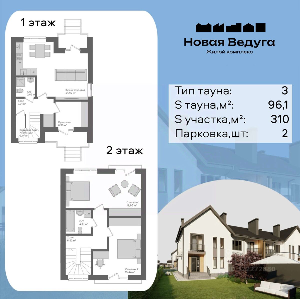 Таунхаус 96,1 кв.м с большим земельным участком 310 кв.м в ЖК "Новая Ведуга" 9 км от Воронежа..