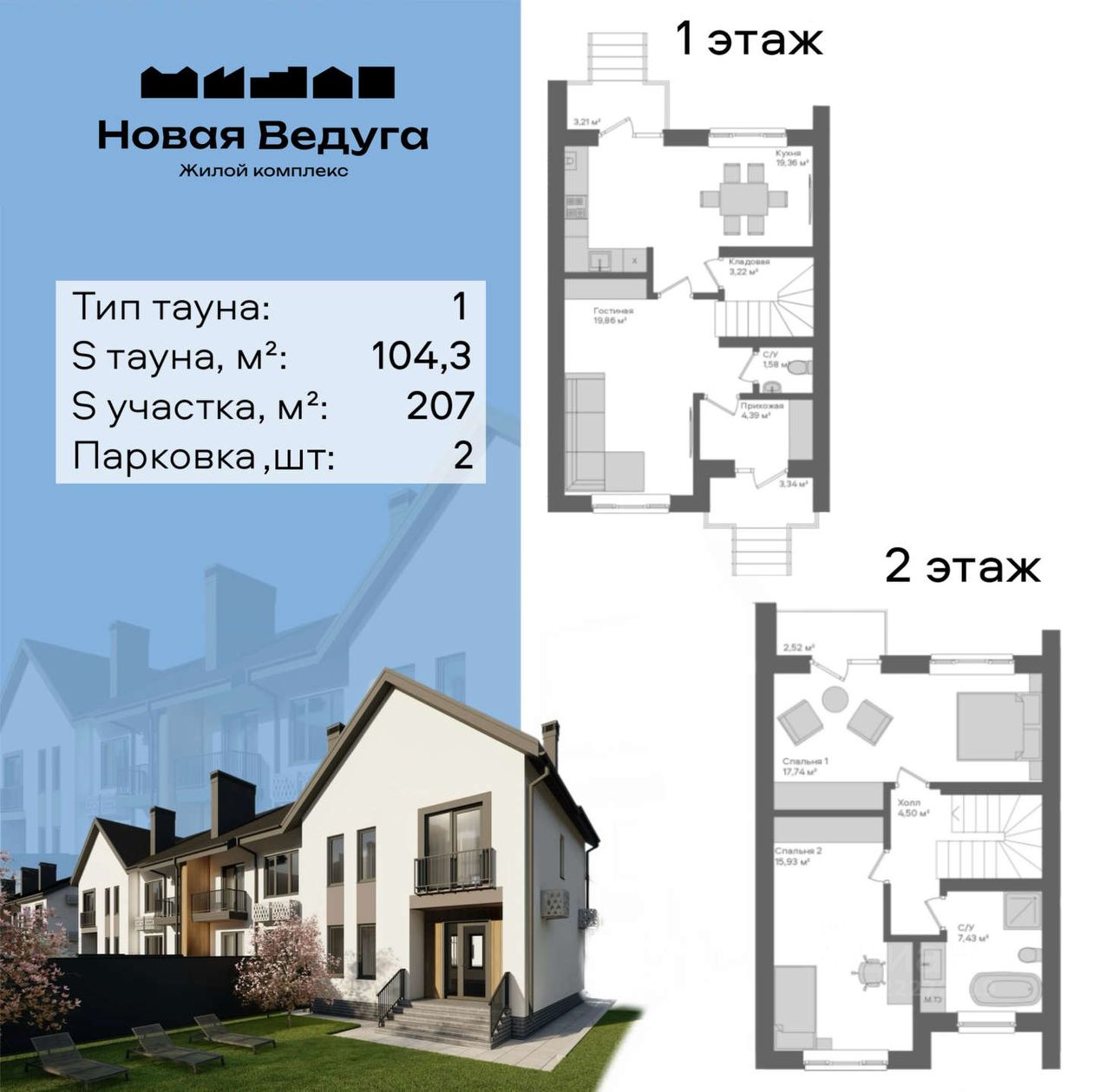Таунхаус 104,3 кв.м с земельным участком 207 кв.м в ЖК "Новая Ведуга" современный формат загородной жизни