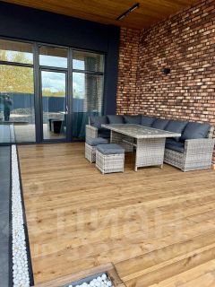 В доме: прихожая, гардеробная, кухня-гостиная со вторым светом и выходом на террасу, 2 спальни, кабинет, ванная, душевая, гостевой санузел.