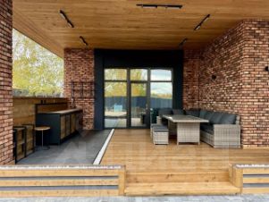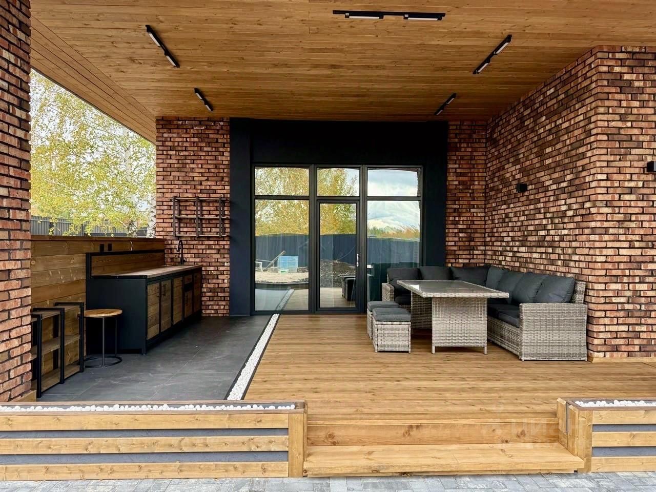 Дом стоит на плите, мебель -массив дуба, бытовая техника премиум класса Kupersberg, сантехника Bogeme, Откосная система QUNELL , летняя кухня, мебель из ротанга, розетка для зарядки электроавтомобиля, собственная скважина.