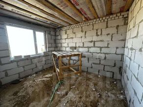 - стены газоблок + 5 см утеплитель + кирпичная кладка;