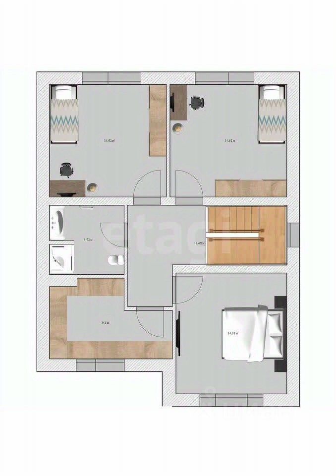 • три просторных спальни (14,91м2, 14,62м2 и 14,54м2);